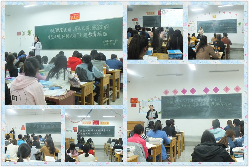 各班班會從什么是文明講起,聯(lián)系生活實際,講述校園文明、家庭文明和社會文明的重要性。各班主任首先向同學(xué)們闡述了對于當(dāng)代大學(xué)生來說,文明修身和專業(yè)學(xué)習(xí)同等重要,專業(yè)學(xué)習(xí)主要培養(yǎng)大學(xué)生的科學(xué)精神,而文明修身主要培養(yǎng)大學(xué)生的人文精神,二者缺一不可。通過講述身邊同學(xué)的故事,指出校園、家庭和社會上存在的不文明、不和諧現(xiàn)象,要求同學(xué)們對自身言行舉止進行約束,共同攜手,提高自身文明行為,提升大家的思想道德和人文素質(zhì)。隨后,由同學(xué)們就“文明行為”發(fā)表了自己的看法,大家由主題聯(lián)想到自己身邊的一些不文明的行為,并就這些不文明行為發(fā)表了自己觀點,同時,同學(xué)們就如何提高自身道德素養(yǎng)、如何更好地做到文明修身提出了自己的建議和意見。經(jīng)過同學(xué)們的積極發(fā)言和認(rèn)真討論,大家認(rèn)為只有文明的個人才會有文明的班級團體,才會有文明的校園,才會有和諧的社會。