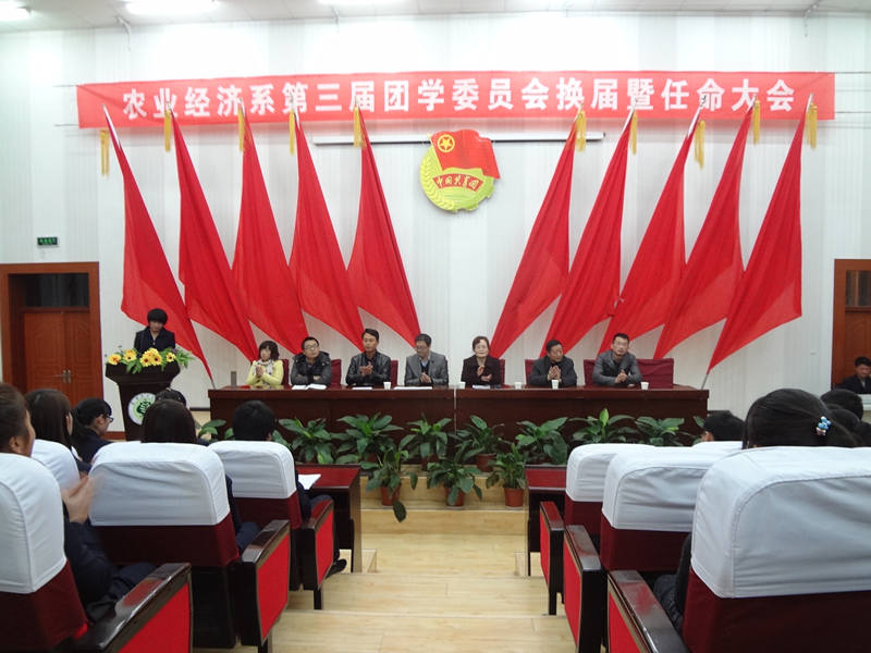 蔡飛介紹了學(xué)生會在學(xué)生工作中所起作用并對新一屆學(xué)生會提出了期望。同時(shí),宣布對農(nóng)業(yè)經(jīng)濟(jì)系第三屆團(tuán)學(xué)干部的任命。大會由第二屆學(xué)生會主席吳光宗做第二屆團(tuán)學(xué)會工作總結(jié),新當(dāng)選主席趙三桃代表新一屆團(tuán)學(xué)會宣誓。會上還對優(yōu)秀團(tuán)學(xué)干部進(jìn)行表彰。