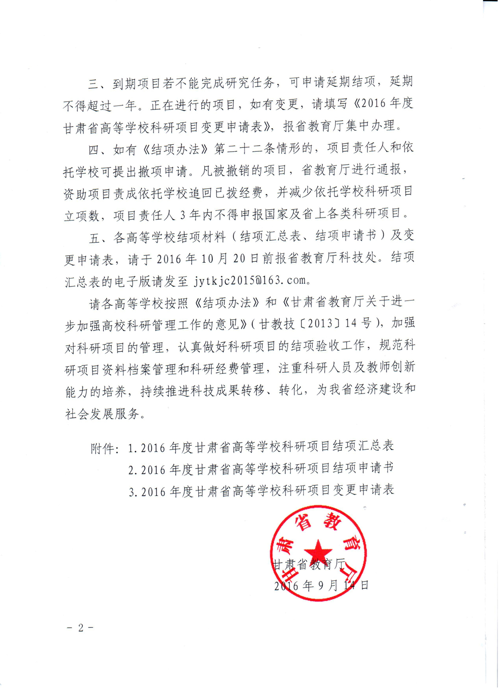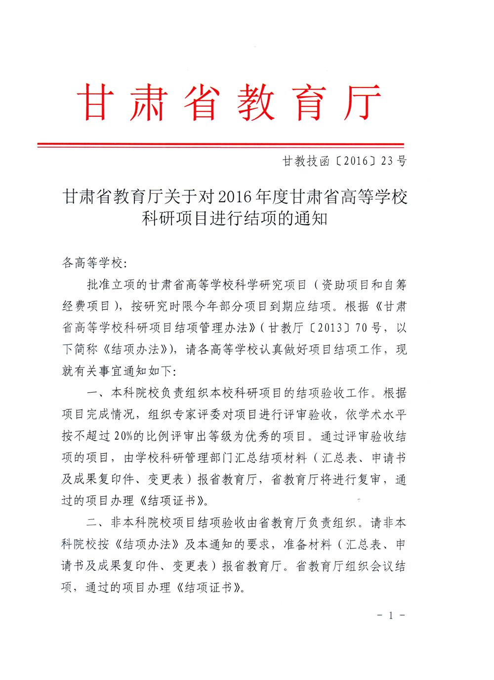 轉(zhuǎn)發(fā)甘肅省教育廳《關(guān)于2016年度甘肅省高等學(xué)校科研項(xiàng)目結(jié)項(xiàng)的通知》