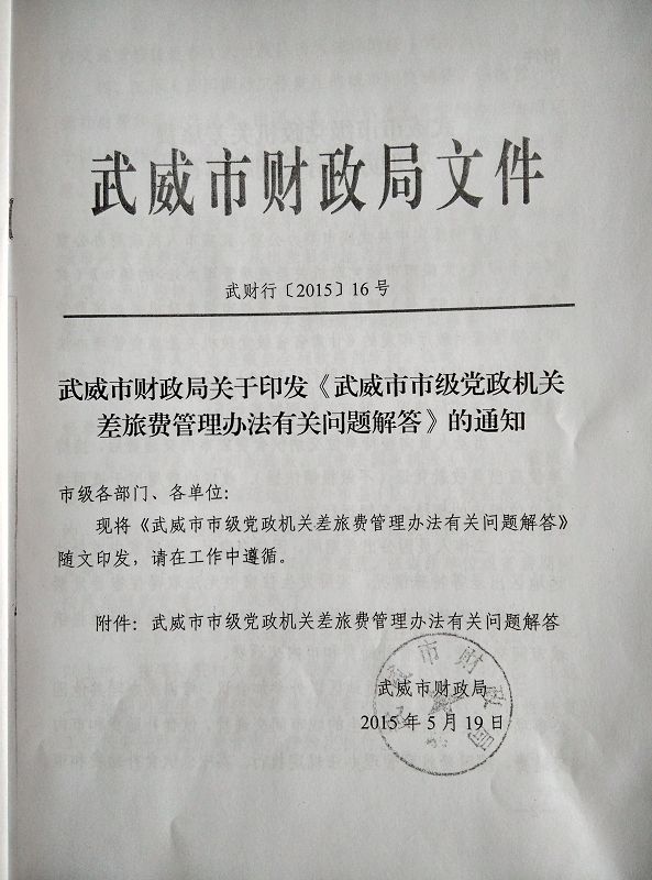 <轉(zhuǎn)發(fā)>武威市市級黨政機(jī)關(guān)差旅費(fèi)管理辦法有關(guān)問題解答