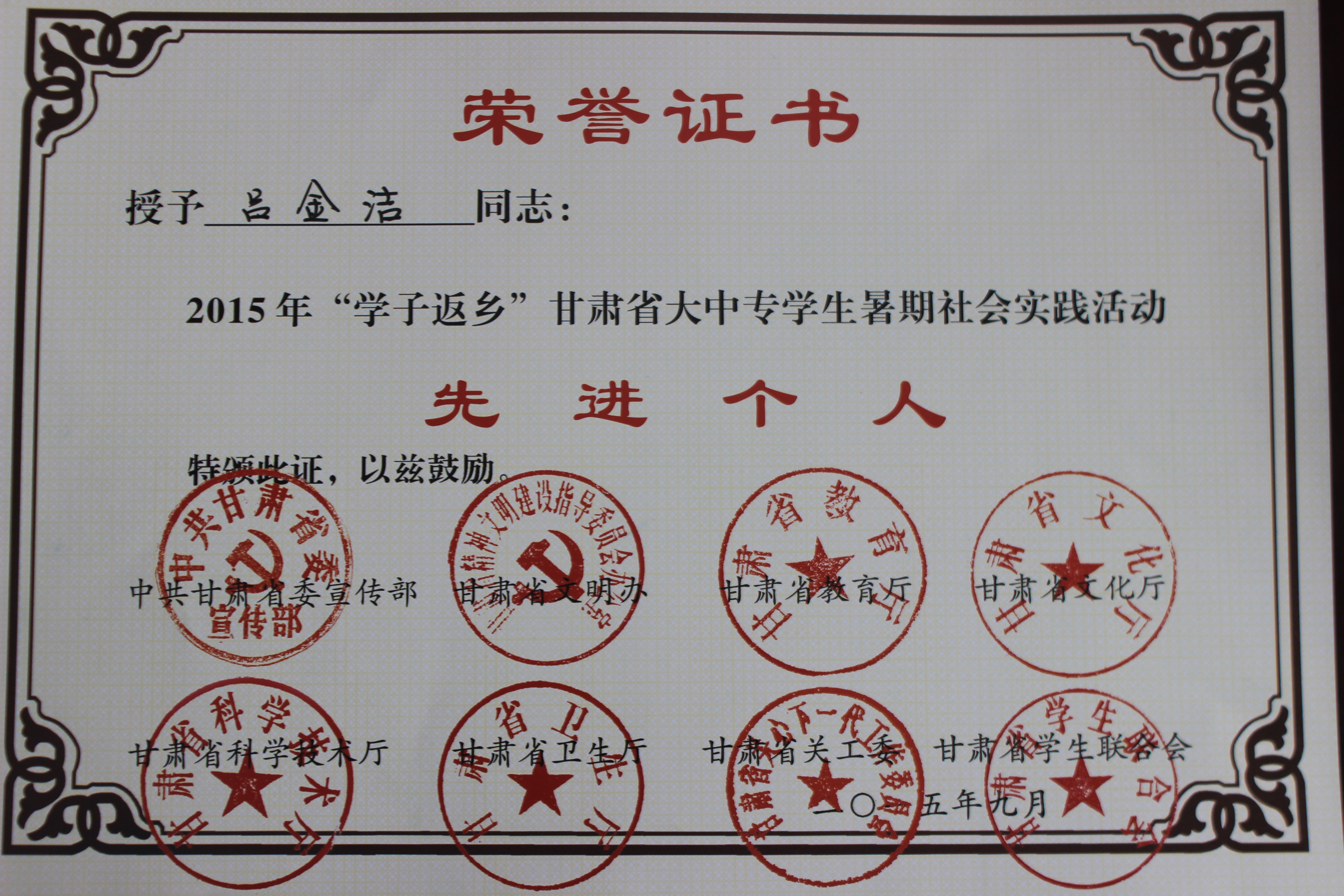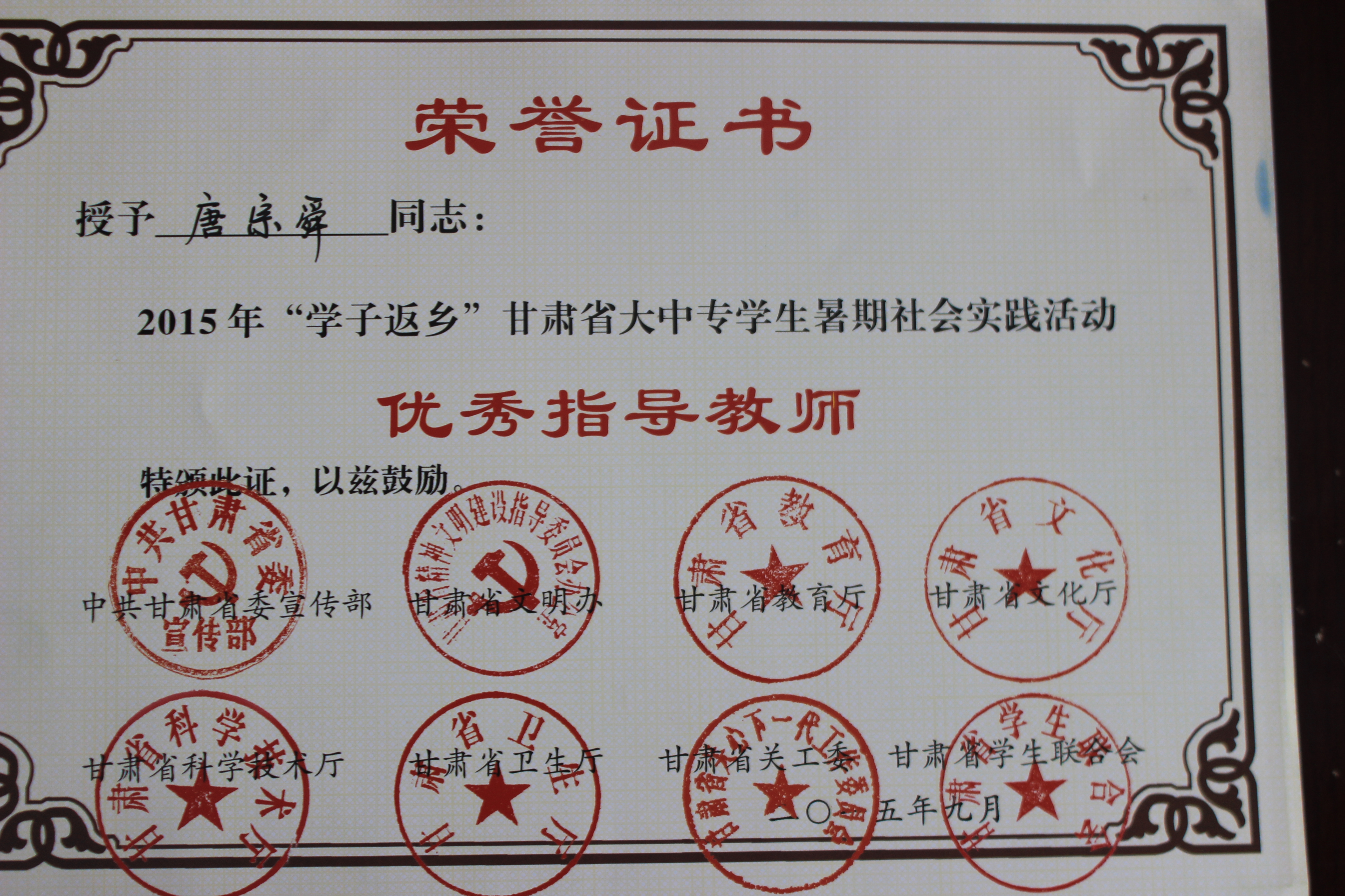 2015年“學(xué)子返鄉(xiāng)”甘肅省大中專學(xué)生暑期社會(huì)實(shí)踐活動(dòng)-優(yōu)秀團(tuán)隊(duì)
