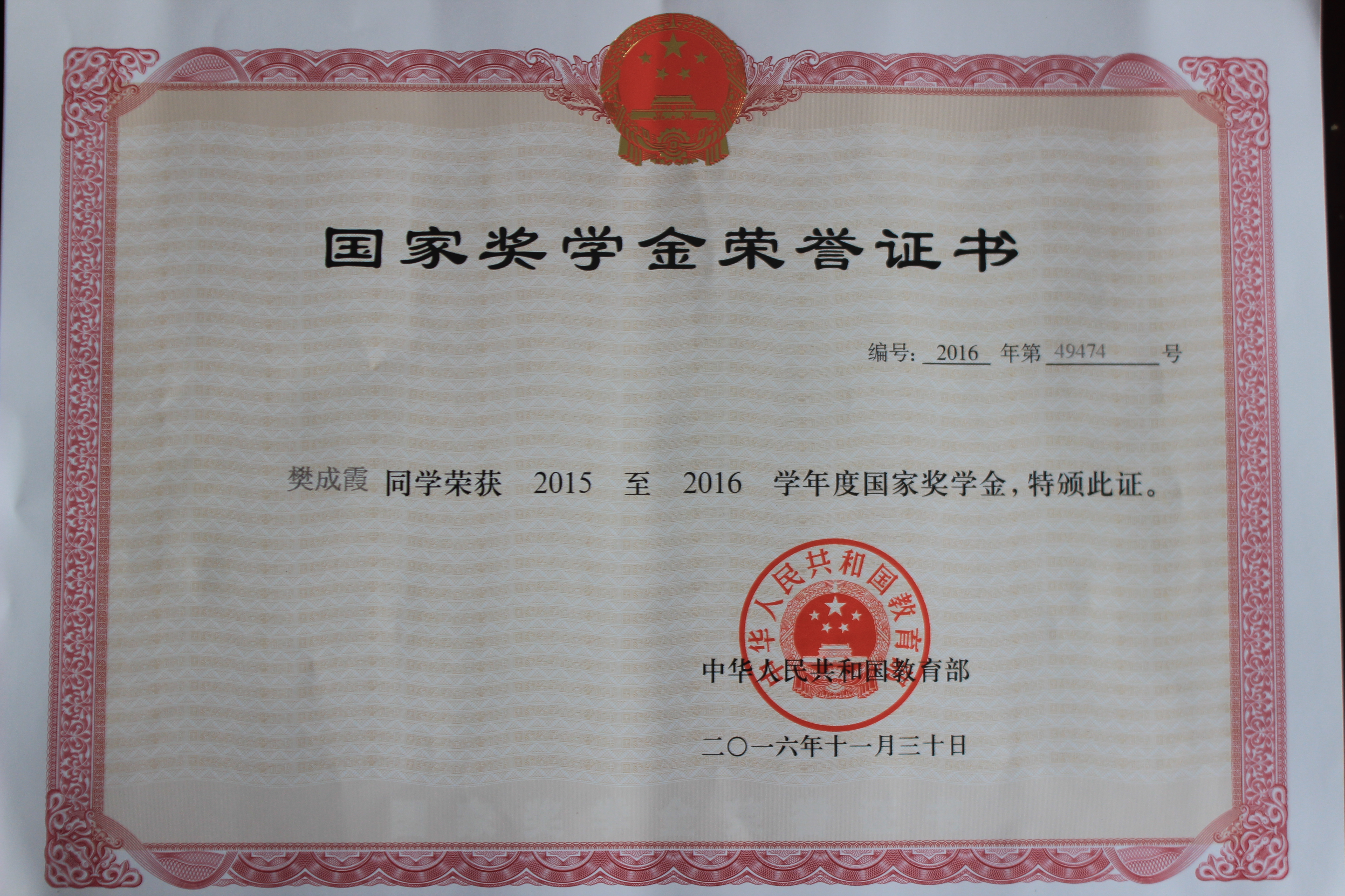國家獎(jiǎng)學(xué)金獲得者-樊成霞
