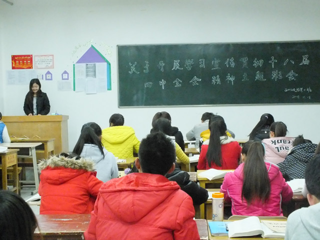 11月18日,我系依據(jù)院團(tuán)委的通知精神,在我系黨總支的精心安排下,系團(tuán)總支組織開展了“貫徹黨的十八屆四中全會(huì)精神”主題團(tuán)會(huì),各班團(tuán)支部書記帶領(lǐng)團(tuán)員青年認(rèn)真學(xué)習(xí)了十八屆四中全會(huì)精神解讀文件。