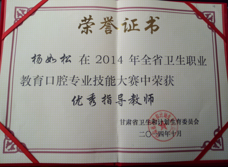 楊如松榮獲2014年全省衛(wèi)生職業(yè)教育口腔專業(yè)技能大賽優(yōu)秀指導教師