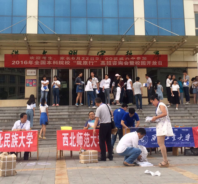 同一天,招生就業(yè)處還選派老師參加了在武威六中舉行的由《未來導(dǎo)報(bào)》主辦的“2016年全國本科院?!]原行’高招咨詢會”,就考生和家長關(guān)心的相關(guān)熱點(diǎn)問題進(jìn)行了現(xiàn)場答疑解惑,考生及家長表示對他們掌握各院校熱門專業(yè)和報(bào)考要求有很大幫助。
