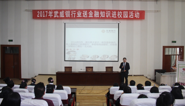 為幫助同學(xué)們了解和掌握銀行業(yè)消費(fèi)常識,增強(qiáng)科學(xué)合理使用銀行產(chǎn)品和服務(wù)的能力,提升同學(xué)們對金融業(yè)務(wù)的風(fēng)險(xiǎn)防范和識別能力,5月11日下午,經(jīng)濟(jì)管理系與甘肅銀行武威分行、郵政儲蓄銀行武威市分行在學(xué)院正德廳聯(lián)合開展了“銀行業(yè)送金融知識進(jìn)校園”宣講活動(dòng)。經(jīng)濟(jì)管理系會(huì)計(jì)電算化、證券與期貨專業(yè)的350余名同學(xué)參加了此次宣講會(huì)。