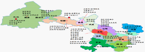 結合區(qū)域經(jīng)濟特色和信息化發(fā)展水平,布局各地信息化發(fā)展重點,依托蘭州新區(qū)和金昌市建設大數(shù)據(jù)產(chǎn)業(yè)園區(qū)和大數(shù)據(jù)中心,根據(jù)各市州優(yōu)勢,推動智慧城市(蘭州、白銀、天水、武威、酒泉、嘉峪關)、信息消費城市(蘭州、白銀、嘉峪關、敦煌等)、“兩化”深度融合城市(蘭州、天水、白銀、金昌、慶陽、嘉峪關、平?jīng)龅龋┑脑圏c建設,開展“互聯(lián)網(wǎng)+”智慧旅游(蘭州、敦煌、酒泉、嘉峪關、張掖、武威、天水、平?jīng)龅龋?ldquo;互聯(lián)網(wǎng)+”生態(tài)環(huán)保(張掖、甘南等)、“互聯(lián)網(wǎng)+”現(xiàn)代農(nóng)業(yè)(張掖、定西、隴南等)、“互聯(lián)網(wǎng)+”電子商務(隴南、臨夏)的新模式,打造現(xiàn)代物流(蘭州、蘭州新區(qū)、武威等)、協(xié)同制造(蘭州、天水、酒泉、金昌、白銀等)和電子信息產(chǎn)業(yè)(蘭州、蘭州新區(qū)、天水)基地建設,逐漸引導形成具有區(qū)域特色的全省信息化發(fā)展戰(zhàn)略新格局(如圖所示)。