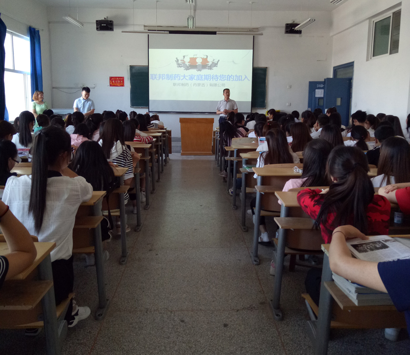 6月22日下午,聯(lián)邦制藥(內(nèi)蒙古)有限公司向即將進(jìn)入實(shí)習(xí)的2015級(jí)學(xué)生做頂崗實(shí)習(xí)宣講。宣講會(huì)上聯(lián)邦制藥李牧青主要就企業(yè)概況、崗位需求、薪酬待遇等方面向同學(xué)們做了介紹,并和部分有意向的同學(xué)現(xiàn)場簽訂實(shí)習(xí)協(xié)議。
