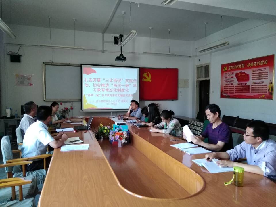 為了扎實開展“三比兩促”實踐活動,切實推進(jìn)“兩學(xué)一做”學(xué)習(xí)教育常態(tài)化制度化,經(jīng)濟管理系于6月29日開展了黨總支書記講黨課活動。黨課由經(jīng)濟管理系黨總支書記潘從民主講,全體黨員參加了本次活動。