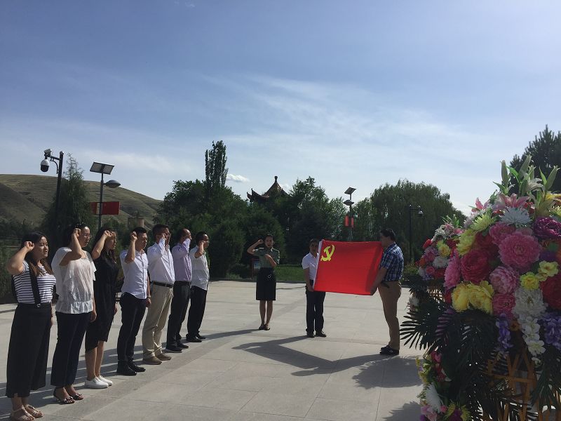 在紅軍西路軍烈士紀(jì)念碑前,面對(duì)鮮紅的黨旗,全體黨員高舉右手,莊嚴(yán)宣誓,重溫了入黨誓詞,接受黨性再教育。在參觀西路軍古浪戰(zhàn)役紀(jì)念館時(shí),大家跟隨講解員,認(rèn)真聆聽西路軍英勇無(wú)畏﹑艱苦斗爭(zhēng)的革命故事。