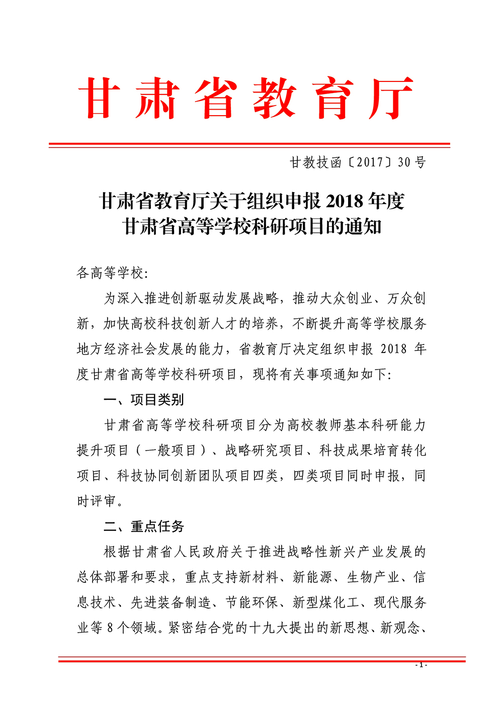 轉(zhuǎn)發(fā)甘肅省教育廳關(guān)于組織申報2018年度甘肅省高等學(xué)??蒲许椖康耐ㄖ?/h1>