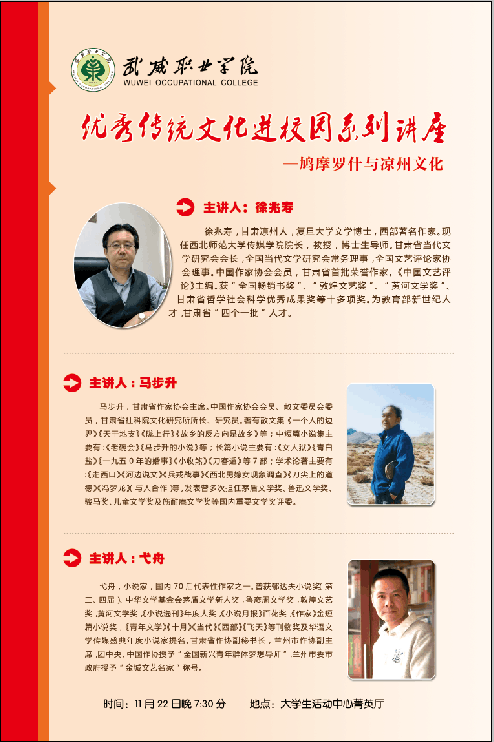 武威職業(yè)學(xué)院優(yōu)秀傳統(tǒng)文化進(jìn)校園系列講座今晚開(kāi)講