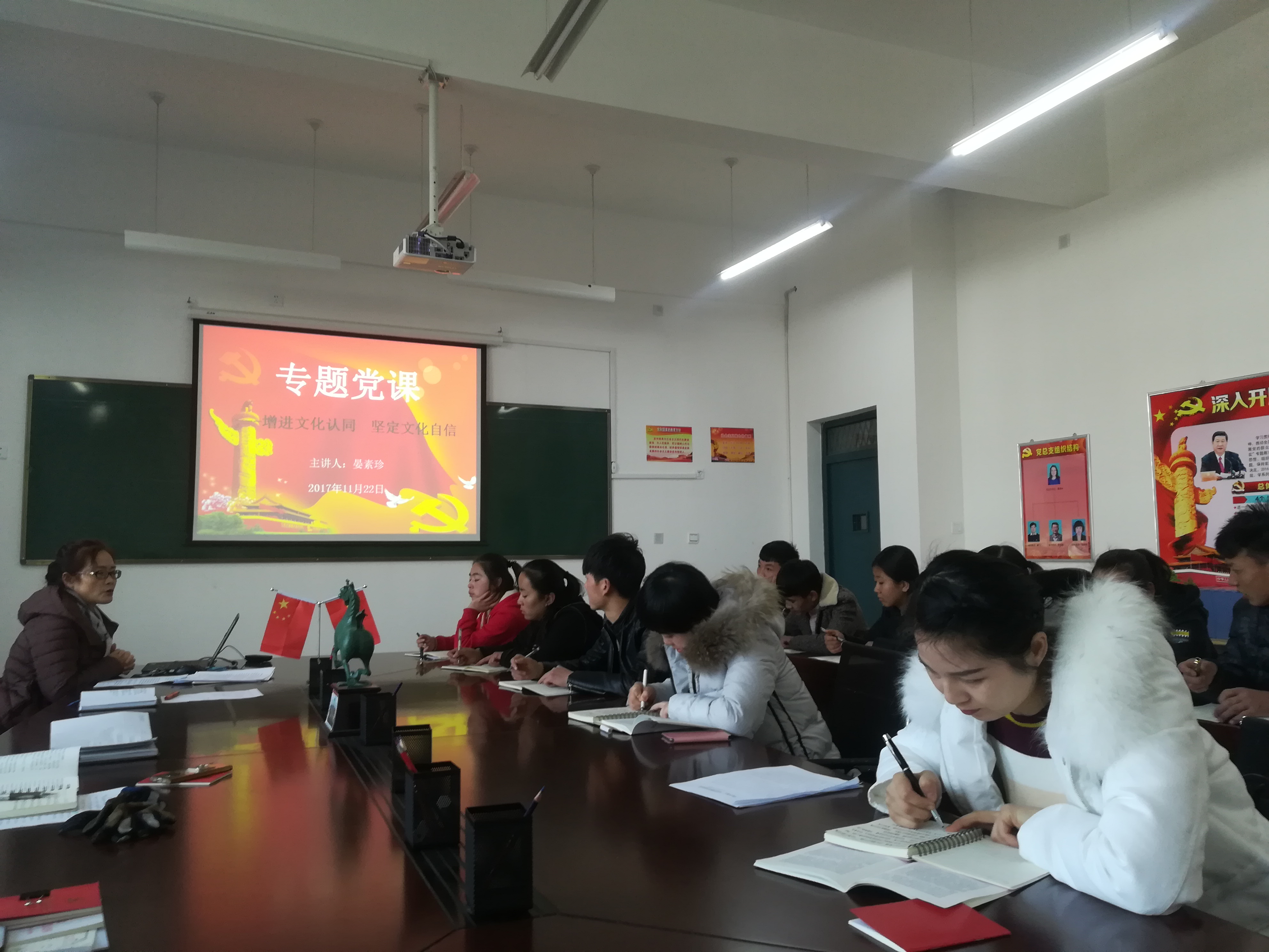 此次黨課后,全體黨員紛紛表示,文化是民族的血脈,是人民的精神家園。把握好文化認(rèn)同與文化自信的內(nèi)在關(guān)系,不斷增進(jìn)文化認(rèn)同、堅(jiān)定文化自信,對于我們深刻領(lǐng)會(huì)黨中央治國理政新理念新思想新戰(zhàn)略,不斷提升對“四個(gè)自信”的理解認(rèn)識(shí),全面建設(shè)社會(huì)主義文化強(qiáng)國,具有十分重要的意義。(供稿:現(xiàn)代農(nóng)業(yè)技術(shù)系? 審核:晏素珍? 撰稿:蔡海 圖片:蔡海)