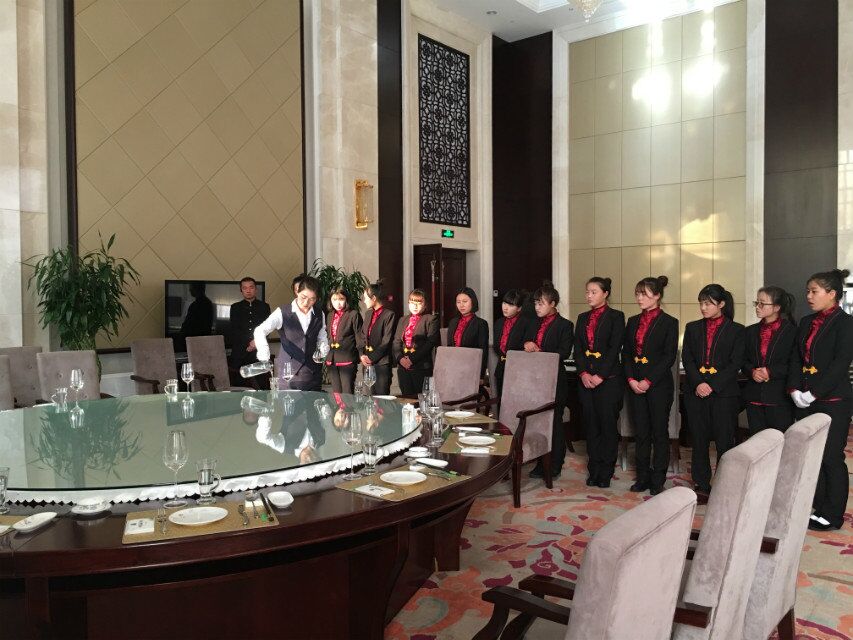 實訓(xùn)期間,同學(xué)們通過誦讀,軍訓(xùn)等方式體驗了酒店的企業(yè)文化,在客房部,同學(xué)們向酒店客房服務(wù)員學(xué)習(xí)并實踐了如何對客房進行清掃及查房,熟悉了客房部的日常工作規(guī)程;在餐飲部實習(xí)中,同學(xué)們向資深的餐廳服務(wù)員學(xué)習(xí)了如何擺臺、撤臺、點菜、上菜等一系列基本的餐廳服務(wù)方法,并對餐廳的服務(wù)流程有了具體的了解。